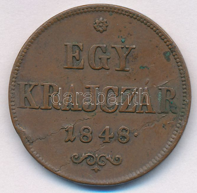 1848. 1kr Cu T:2,2- ph. Adamo B1 https://www.darabanth.com/de/272-Fernauktion/272.0/Numismatik/Ungarische-Munzen-und-Munzen-mit-ungarischem-Munzzeichen~300008/1848-1kr-Cu-T2-2-ph-Adamo-B1~II1385340