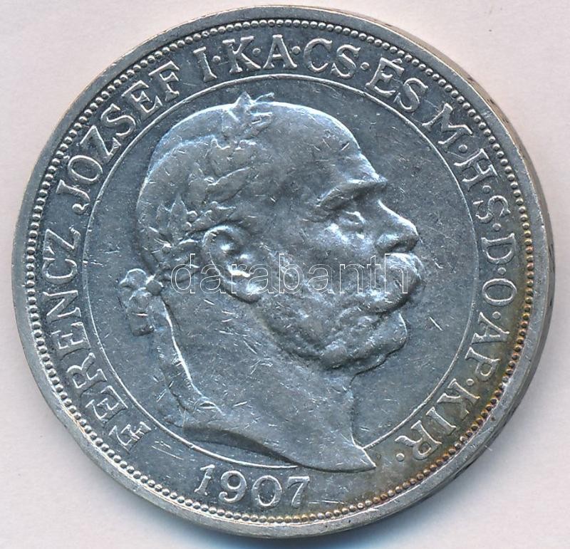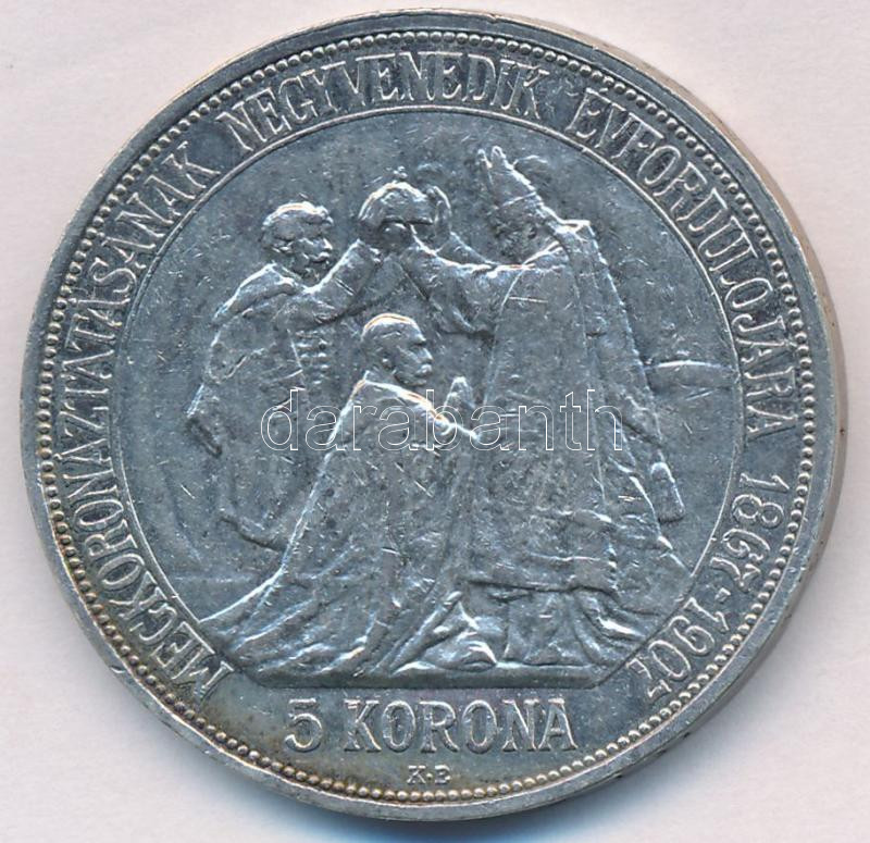 1907KB 5K Ag "Ferenc József koronázásának 40. évfordulója" T:2,2- kis ph. és oxidáció Hungary 1907KB 5 Korona Ag "40th Anniversary of the Coronation of Franz Joseph I" Kremnitz C:XF,VF small edge error and oxidation Huszár: 2214.a, Adamo K7.1