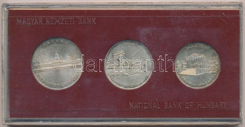 Beschreibung: 1956. 10Ft + 20Ft + 25Ft Ag "10 éves a Forint" sor bordó MNB tokban T:2