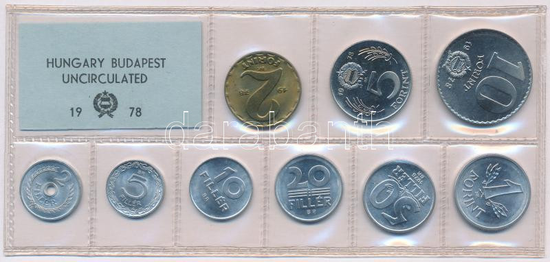 1978. 2f-20Ft 9db klf érmés forgalmi sor fóliatokban T:1 https://www.darabanth.com/de/272-Fernauktion/272.0/Numismatik/Ungarische-Munzen-und-Munzen-mit-ungarischem-Munzzeichen~300008/1978-2f-20Ft-9db-klf-ermes-forgalmi-sor-foliatokban-T1~II1385699
