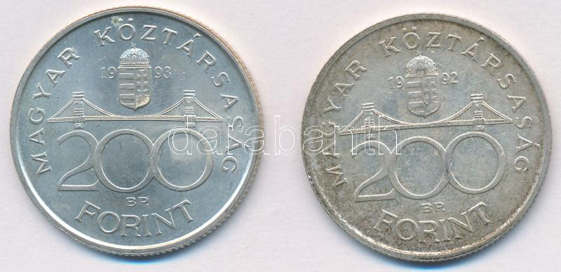 Beschreibung: 1992-1993. 200Ft Ag "MNB" (2x) T:2 egyiken patina