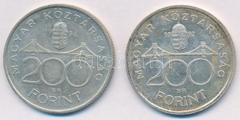 Beschreibung: 1992-1994. 200Ft Ag "MNB", "Deák" (2x) T:2 egyiken patina