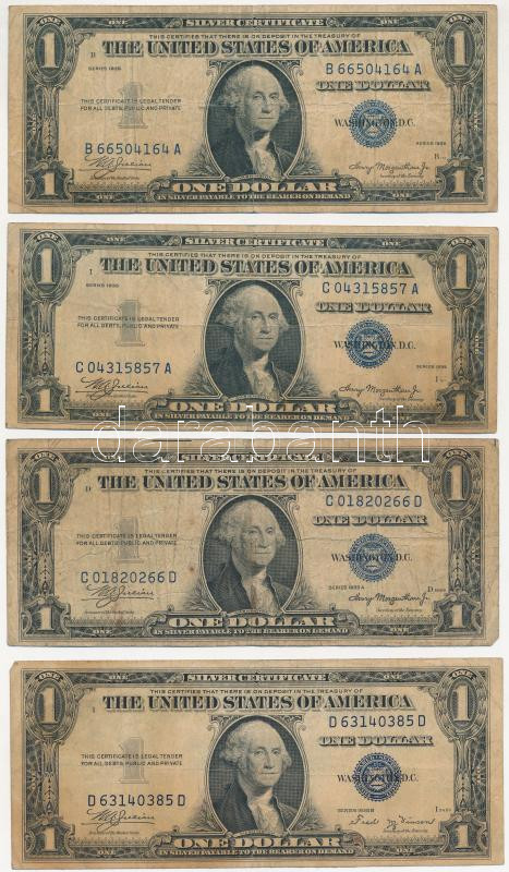 Beschreibung: Amerikai Egyesült Államok 1935,1935A,1935B 1$ kék pecséttel (4x) T:III USA 1935,1935A,1935B 1 Dollar with blue seal (4x) C:F