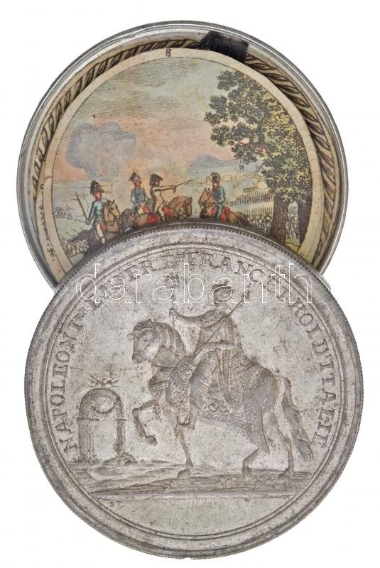 Német Államok ~1820. "I. Napóleon / Az egyetértés mindent legyőz" ón szétcsavarható emlékérem, a két oldal nem összetartozó, benne színes csataábrázolásokkal. Szign.: Stettner (51mm) T:2,2- German States ~1820. "Napoleon I / Eintracht überwindet alles" commemorative tin medallion that can be opened, the two pieces do not belong together, with colored battle pictures inside. Sign.: Stettner (51mm) C:XF,VF