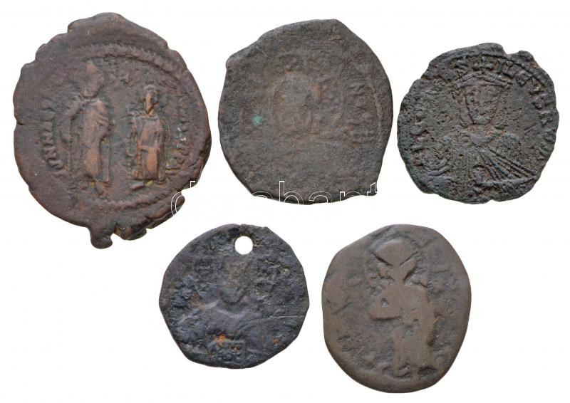 5db klf bizánci bronzpénz, közte hamis is T:3,3- ly.