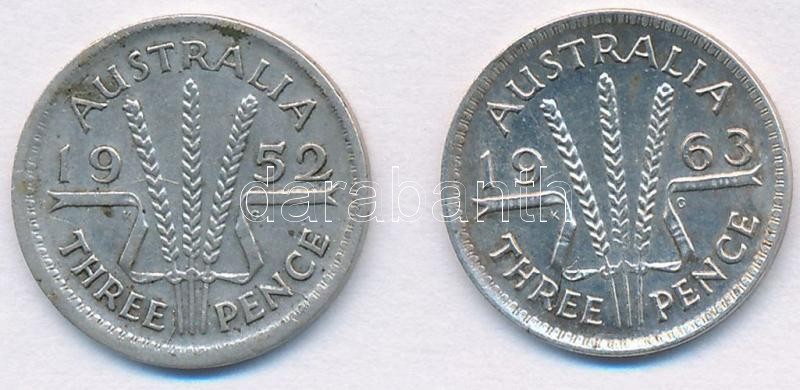 Ausztrália 1952. 3p Ag + 1963. 3p Ag T:2,2- Australia 1952. 3 Pence Ag + 1963. 3 Pence Ag C:XF,VF Krause KM#44, KM#57