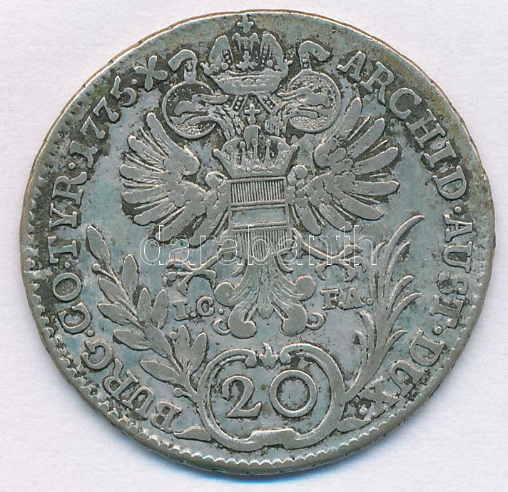 Ausztria 1775IC-FA 20kr Ag "Mária Terézia" (6,45g) T:2- pati... https://www.darabanth.com/de/272-Fernauktion/272.0/Numismatik/Weltweit-Munzen~300013/Ausztria-1775IC-FA-20kr-Ag-Maria-Terezia-6-45g-T2-patina--Austria-1775IC-FA-20-Kreuzer-Ag-M~II1384200
