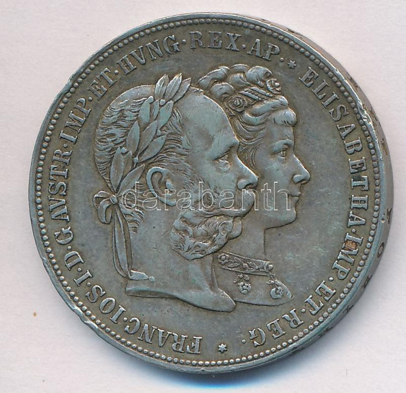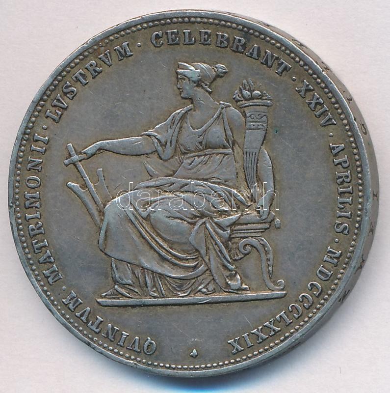 Ausztria 1879. 2G Ag "I. Ferenc József és Erzsébet királynő / Ezüstlakodalom" T:2- ph. Austria 1879. 2 Gulden Ag "Franz Joseph and Elisabeth / Silver Jubilee" C:VF edge error Krause X#M5