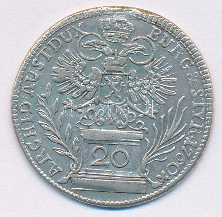 Csehország / Történelmi tartomány 1760. 20kr Ag "Mária Terézia&qu... https://www.darabanth.com/de/272-Fernauktion/272.0/Numismatik/Weltweit-Munzen~300013/Csehorszag-Tortenelmi-tartomany-1760-20kr-Ag-Maria-Terezia-6-58g-T2-fulnyom--Bohemia-~II1384160