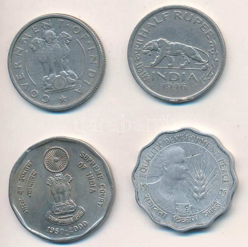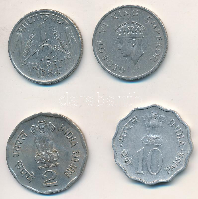 India 1946. 1/2R Ni + 1954. 1/2R Ni + 1975. 10p Al + 2000. 2R Ni T:2,2- ph. India 1946. 1/2 Rupee Ni + 1954. 1/2 Rupee Ni + 1975. 10 Paise Al + 2000. 2 Rupees Ni C:XF,VF edge error