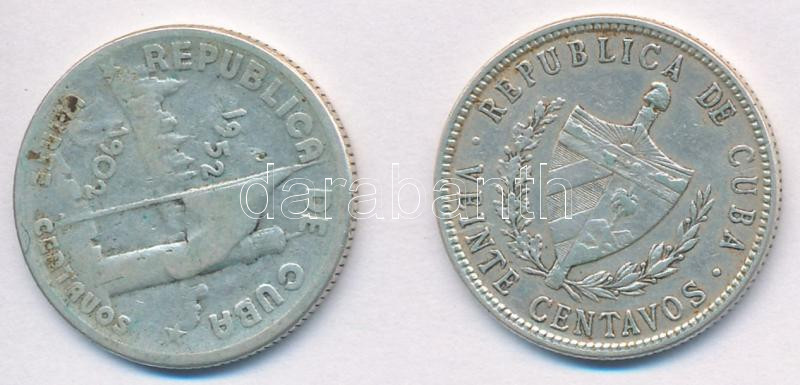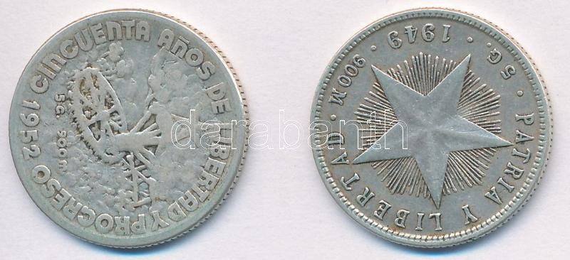 Cuba 1949. 20 Centavos Ag + 1952. 20 Centavos Ag C:XF,VF