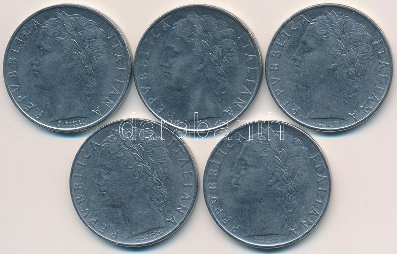 Olaszország 1957-1963R 100L acél (5x) T:2 Italy 1957-1963R 100 Lire stainless stell (5x) C:XF Krause KM#96.1