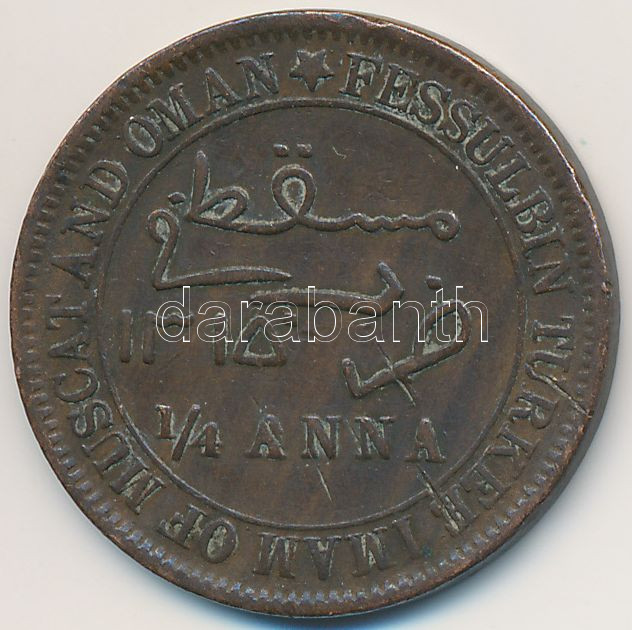 Oman / Muscat 1897. 1/4 Anna Cu ... https://www.darabanth.com/de/272-Fernauktion/272.0/Numismatik/Weltweit-Munzen~300013/Oman-Maszkat-1897-14A-Cu-T2-k--Oman-Muscat-1897-14-Anna-Cu-CVF-scratched~II1365398