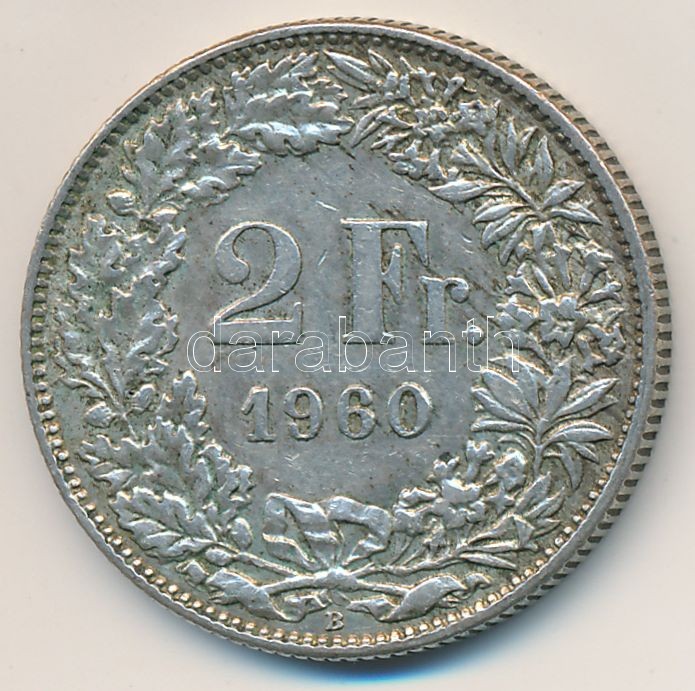 Switzerland 1960B 2 Francs Ag C:XF https://www.darabanth.com/de/272-Fernauktion/272.0/Numismatik/Weltweit-Munzen~300013/Svajc-1960B-2Fr-Ag-T2---Switzerland-1960B-2-Francs-Ag-CXF~II1387379