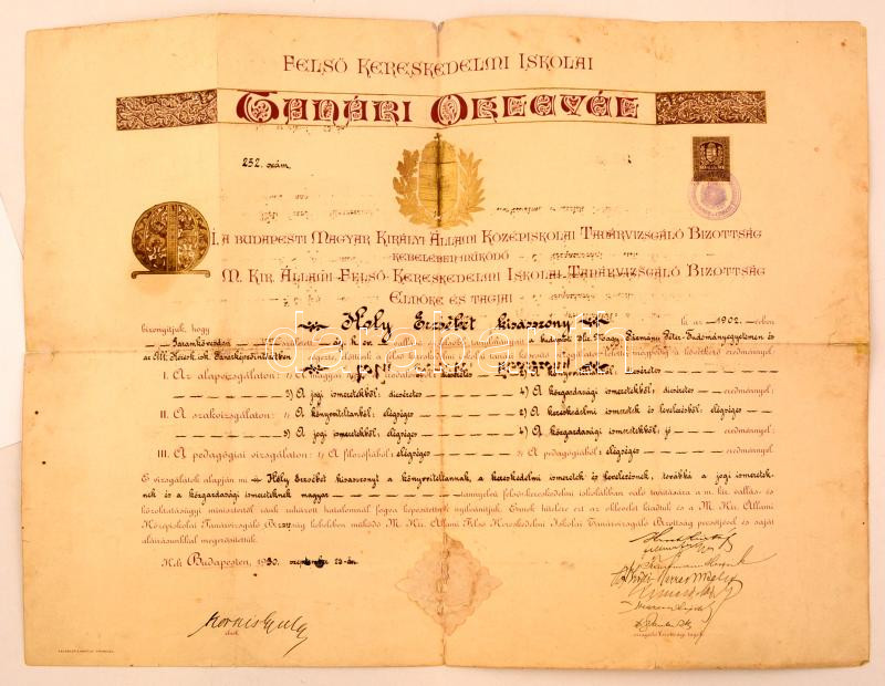 1930 a Felső Kereskedelmi Iskola díszes tanári oklevele, okmánybélyegg... https://www.darabanth.com/de/273-Fernauktion/273.0/Andere-Sammelgebiete/Dokument~31/1930-a-Felso-Kereskedelmi-Iskola-diszes-tanari-oklevele-okmanybelyeggel~II1390439