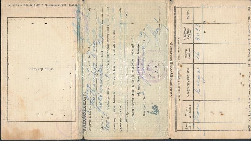 1943 Kitöltött vadászjegy, fénykép nélkül https://www.darabanth.com/de/273-Fernauktion/273.0/Andere-Sammelgebiete/Dokument~31/1943-Kitoltott-vadaszjegy-fenykep-nelkul~II1393365