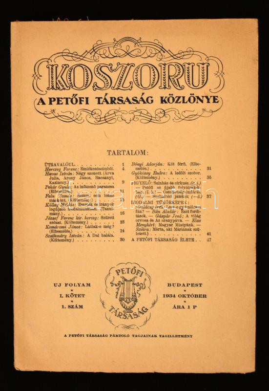 1934 a Koszorú (új folyam) 1. évf. 1. száma, érdekes írásokkal, papírk... https://www.darabanth.com/de/273-Fernauktion/273.0/Andere-Sammelgebiete/Drucksachen~8/1934-a-Koszoru-uj-folyam-1-evf-1-szama-erdekes-irasokkal-papirkotesben-jo-allapo~II1393227