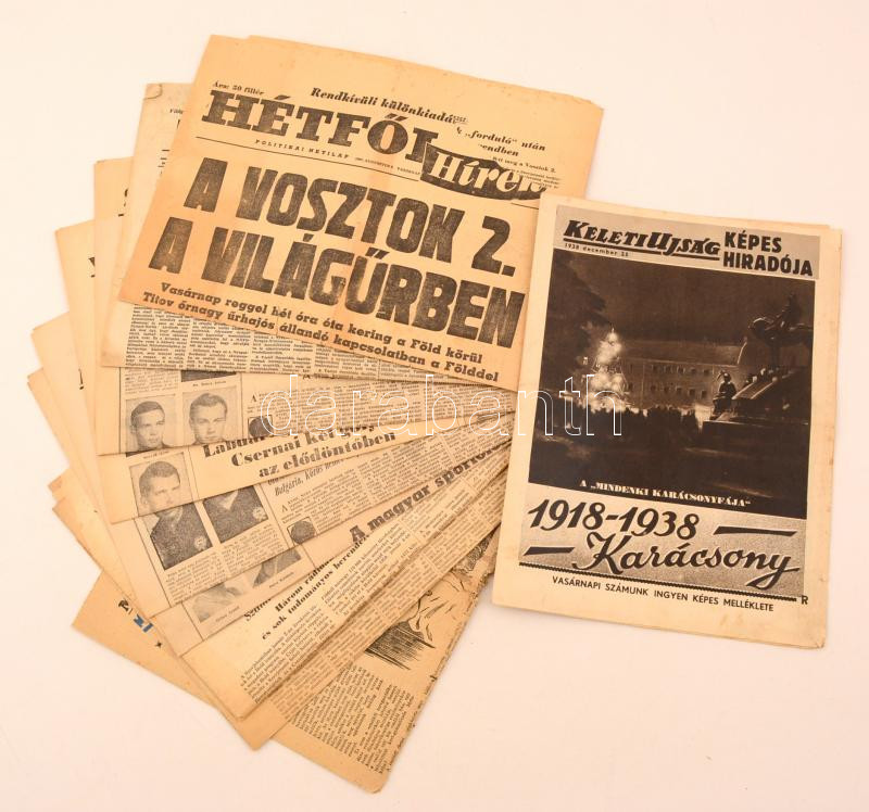 1938-1964 Vegyes napilap tétel, 10 db(Hétfői Hírek, Népszava, Népsport, Népszabadság, Keleti Újság, Mai Nap stb.), bennük érdekes cikkekkel(űrhajózás, varsói szerződés, sportesemények, stb.)