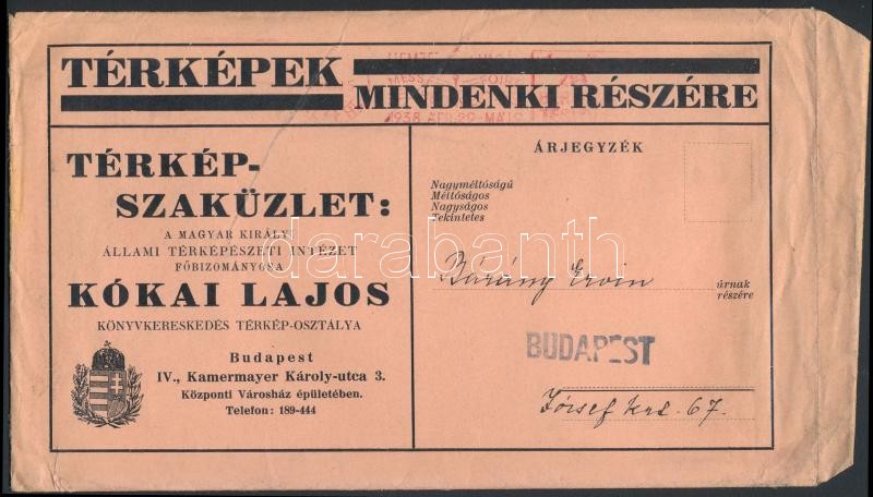 1938 Bp., "Térképek mindenkinek!" - Kókai Lajos térképszaküzletének ár... https://www.darabanth.com/de/273-Fernauktion/273.0/Andere-Sammelgebiete/Drucksachen~8/1938-Bp-Terkepek-mindenkinek--Kokai-Lajos-terkepszakuzletenek-arjegyzeke-boritekka~II1391777