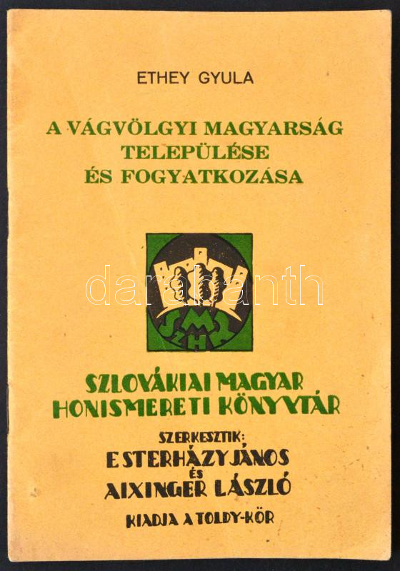 1941 Ethey Gyula: A Vágvölgyi magyarság települése és fogyatkozása, Sz... https://www.darabanth.com/de/273-Fernauktion/273.0/Andere-Sammelgebiete/Drucksachen~8/1941-Ethey-Gyula-A-Vagvolgyi-magyarsag-telepulese-es-fogyatkozasa-Szlovakiai-Magyar-Honism~II1391955