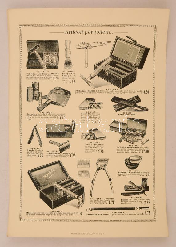 1995 Régi olasz borotválkozáshoz szükséges eszközöket bemutató plakát ... https://www.darabanth.com/de/273-Fernauktion/273.0/Andere-Sammelgebiete/Drucksachen~8/1995-Regi-olasz-borotvalkozashoz-szukseges-eszkozoket-bemutato-plakat-reprint-kiadasa-50x~II1393326