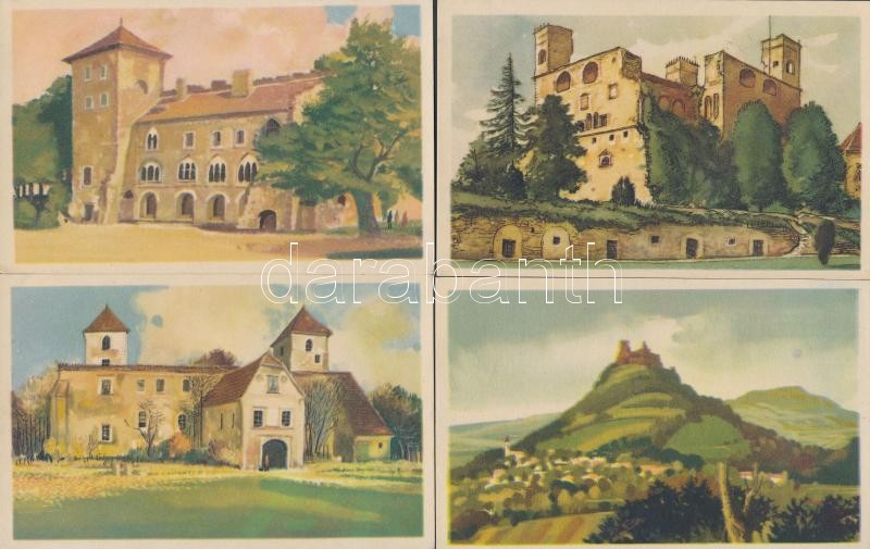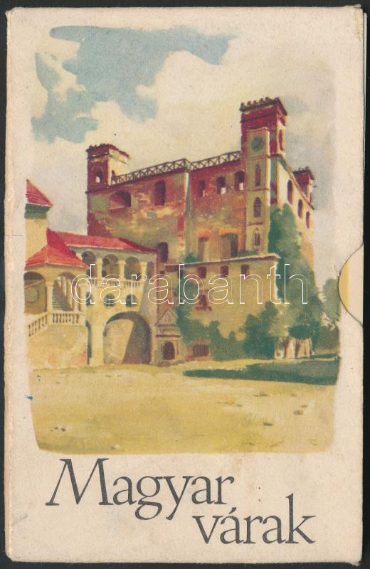 Beschreibung: Pásztói Margit-Szedlák György (szerk.): Magyar Várak. Szűcs Pál, Sinkó Károly, Piros Tibor rajzai, nyomtatvány, 25db, 9x14cm, papírmappában.