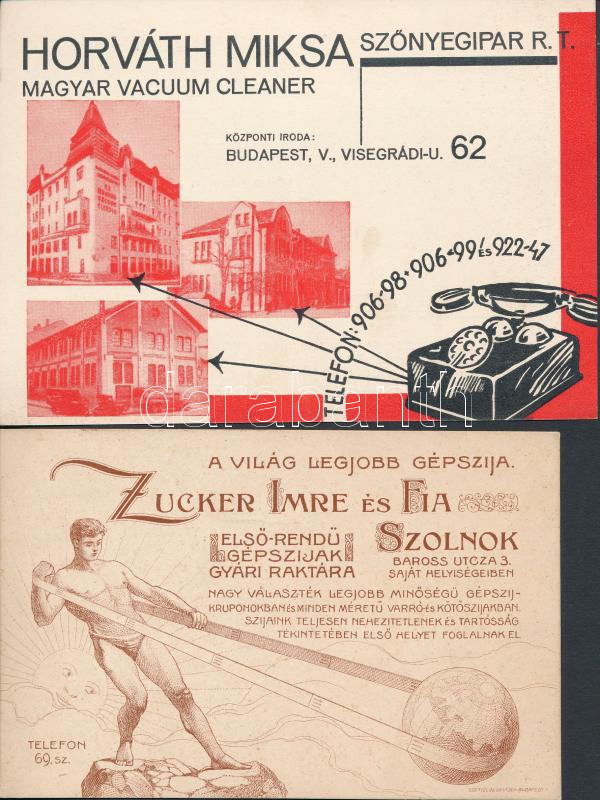 cca 1910-1930 Szolnok Zucker Gépszíj, Budapest - Magyar Vacuum Cleaner... https://www.darabanth.com/de/273-Fernauktion/273.0/Andere-Sammelgebiete/Drucksachen~8/cca-1910-1930-Szolnok-Zucker-Gepszij-Budapest--Magyar-Vacuum-Cleaner-ket-reklam-nyomtatvany~II1393064