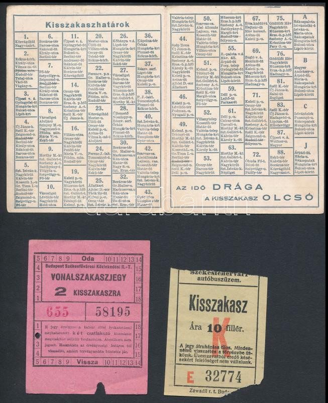 Beschreibung: cca 1933 Viszonylatonkinti Kisszakaszbeosztás, vonalszakaszjegy és egy kisszakaszjegy, összesen 3 db.