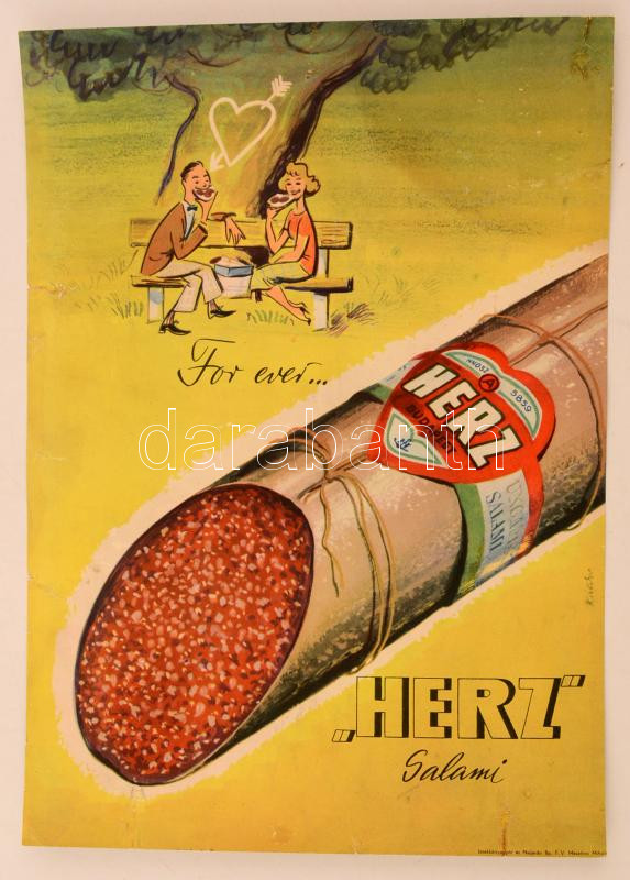 cca 1960-70 Hertz szalámi, reklámnyomtatvány, karton, 33x23cm https://www.darabanth.com/de/273-Fernauktion/273.0/Andere-Sammelgebiete/Drucksachen~8/cca-1960-70-Hertz-szalami-reklamnyomtatvany-karton-33x23cm~II1391963