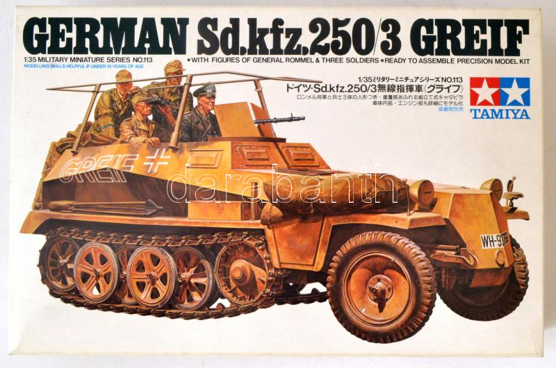 Tamiya márkájú Sd.kfz.250/3 Greif német katonai jármű modell, eredeti ... https://www.darabanth.com/de/273-Fernauktion/273.0/Andere-Sammelgebiete/Flohmarkt~21/Tamiya-markaju-Sdkfz2503-Greif-nemet-katonai-jarmu-modell-eredeti-dobozaban-hianytalanu~II1388933