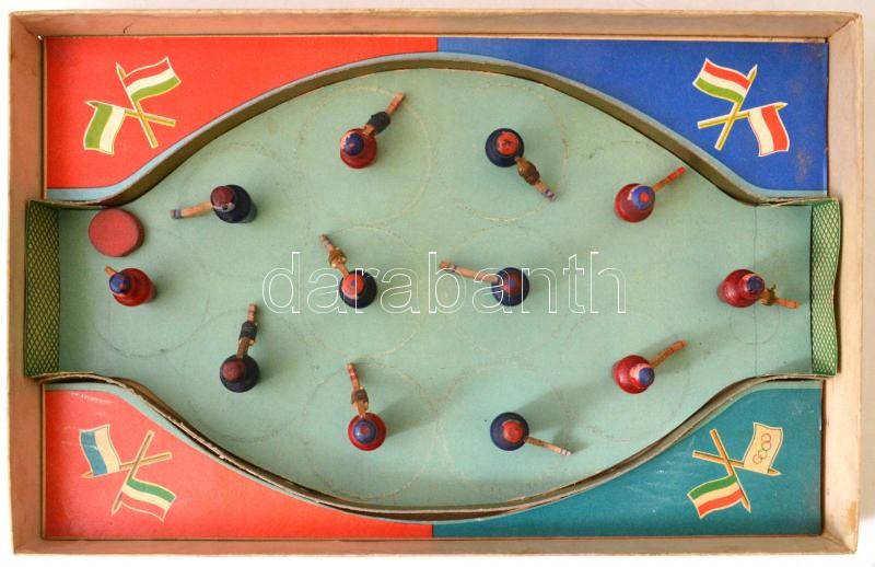 Beschreibung: cca 1940 Platnik retro Jéghokki társasjáték, egy törött, és több javított figurával, a borítója kopott, foltos.