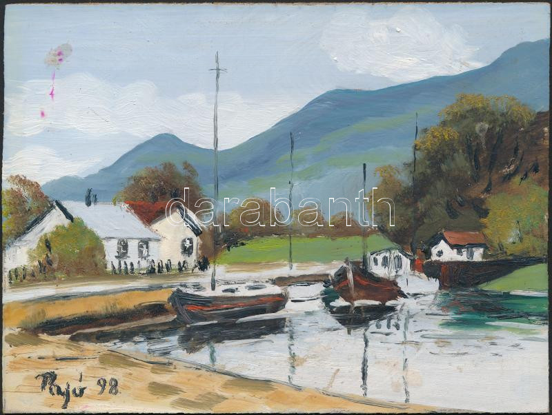 Papp József (1957-): Falusi kikötő. Olaj, farost, jelzett, 15×20 cm https://www.darabanth.com/de/273-Fernauktion/273.0/Andere-Sammelgebiete/Gemalde-und-Grafiken~1/Papp-Jozsef-1957-Falusi-kikoto-Olaj-farost-jelzett-15C39720-cm~II1391207