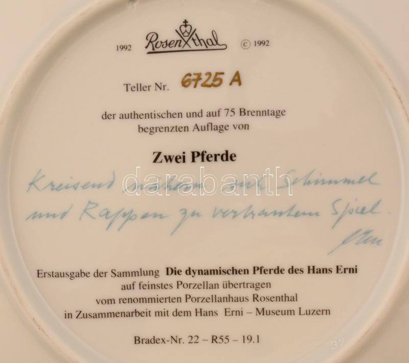Rosenthal Lovas dísztányér, sorszámozott: 6725A, matricás, jelzett, hi... https://www.darabanth.com/de/273-Fernauktion/273.0/Andere-Sammelgebiete/Porzellan~14/Rosenthal-Lovas-disztanyer-sorszamozott-6725A-matricas-jelzett-hibatlan-d20cm~II1390767