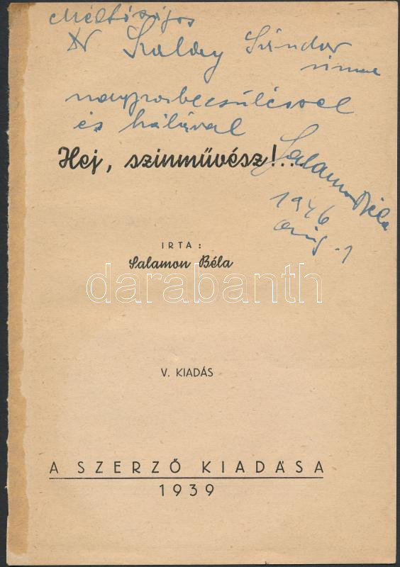 1946 Salamon Béla (1885-1965) üdvözlő sorai és aláírása saját könyvéne... https://www.darabanth.com/de/273-Fernauktion/273.0/Andere-Sammelgebiete/Signatur~45/1946-Salamon-Bela-1885-1965-udvozlo-sorai-es-alairasa-sajat-konyvenek-kivagott-cimlap~II1390585