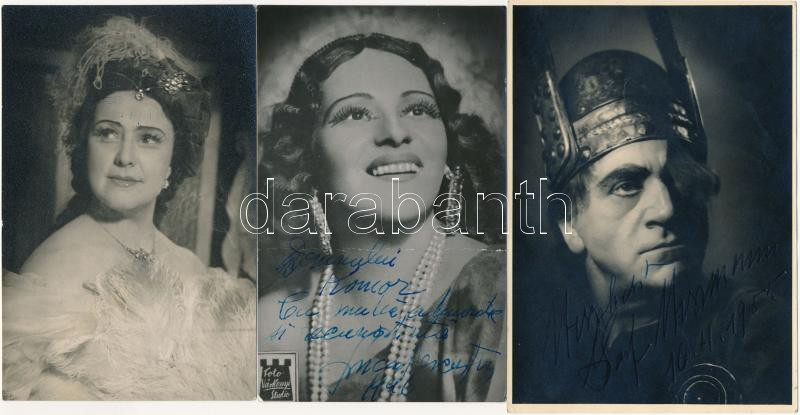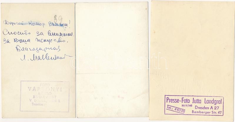 Beschreibung: 3 db orosz operaénekes aláírt fényképe.Jelzett Várkonyi fotó is közte / Russian opera singers autograph signed photos