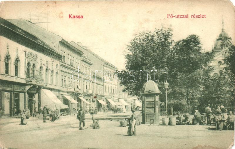 Beschreibung: Kassa, Kosice; Fő utca, piac, Róth Lipót üzlete / main street, shop (EM)
