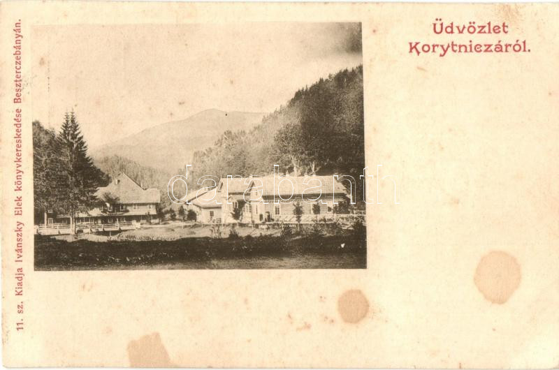 Beschreibung: Korytnica, Látkép, villák, kiadja Ivánszky Elek / general view, villas (vágott / cut)