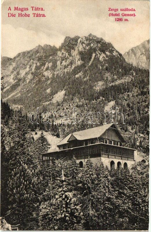 Tátra, Zerge szálló / hotel https://www.darabanth.com/de/273-Fernauktion/273.0/Ansichtskarten/Slowakei~200006/Tatra-Zerge-szallo-hotel~II1393911