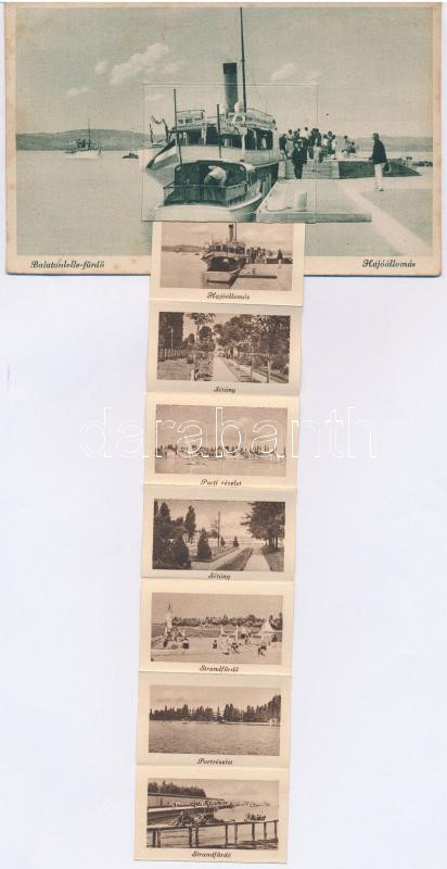 Balatonlelle-fürdő, Hajóállomás leporellocard (benne vasútállomás https://www.darabanth.com/de/273-Fernauktion/273.0/Ansichtskarten/Ungarn~200004/Balatonlelle-furdo-Hajoallomas-leporellocard-benne-vasutallomas~II1391631