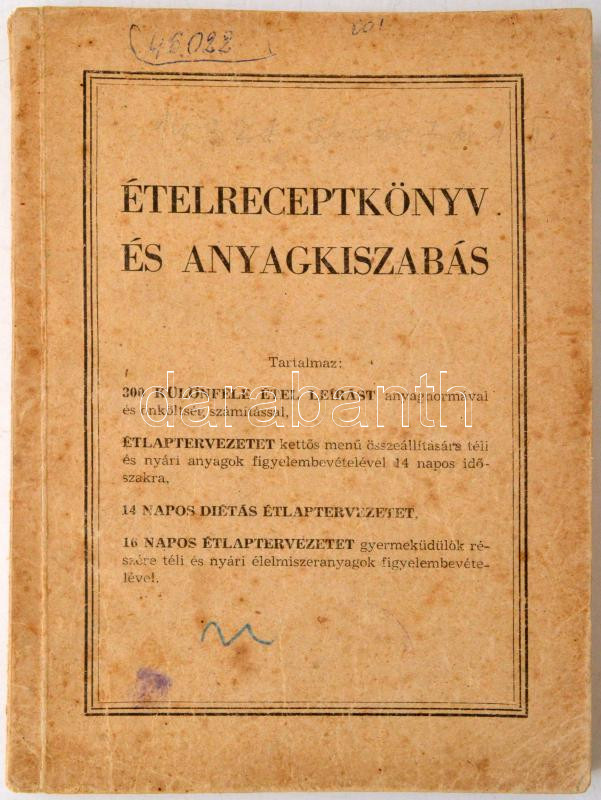 Ételreceptkönyv és anyagkiszabás. Budapest, é.n. [1956], SZOT Üdülési ... https://www.darabanth.com/de/273-Fernauktion/273.0/Bucher/Bucher-Kuche-und-Garten~22/Etelreceptkonyv-es-anyagkiszabas-Budapest-en-1956-SZOT-Udulesi-es-Szanatoriumi-Foi~II1395211