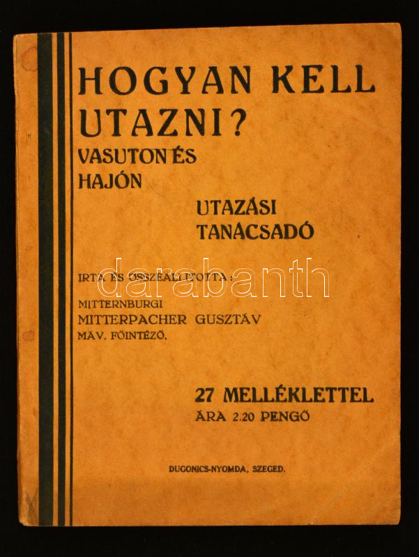 Mitternburgi Mitterpacher Gusztáv: Hogyan kell utazni? Vasúton és hajón, utazási tanácsadó. Szeged, é.n., Dugonics Nyomda. Kiadói karton kötésben.