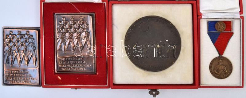 1964. "Munkásőr" Br kitüntetés mellszalagon, szalagsávval és miniatűrrel eredeti dísztokban + Kiss Nagy András (1930-1997) 1977. "De elvtársaim! Ez az a munkásság, mely osztályharcban vasba öltözött... / Emlékül a Munkásőrség alapító tagjának a Munkásőrség országos parancsnokától 1977. II." vörösréz emlékplakett (104,5x72mm) (2x), egyik tokban + Rácz Edit (1936-) 1972. "Vezess Baleset Nélkül Mozgalom" Br emlékplakett sérült tokban (94mm) T:2