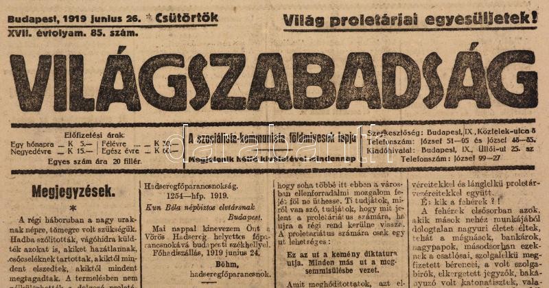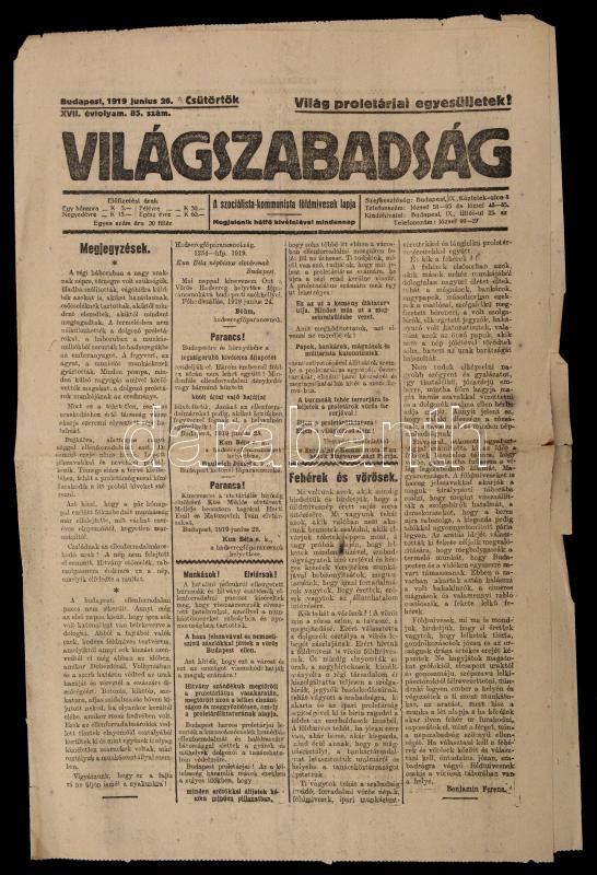 1919 Világszabadság. 1919 Junius 26., XVII. évfolyam 85 szám. A szocál... https://www.darabanth.com/de/274-Fernauktion/274.0/Andere-Sammelgebiete/Drucksachen~28/1919-Vilagszabadsag-1919-Junius-26-XVII-evfolyam-85-szam-A-szocalista-kommunista-foldmive~II1400516