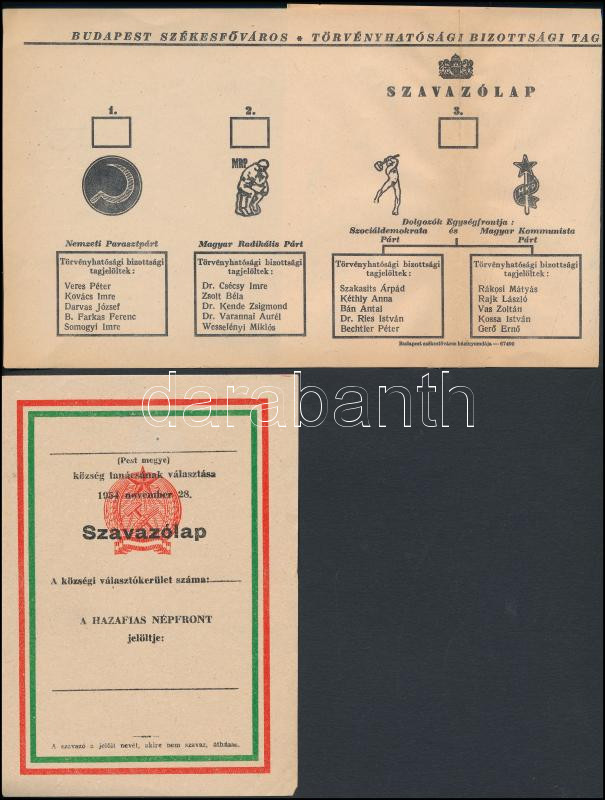 1945, 1954 választások szavazólapjai https://www.darabanth.com/de/274-Fernauktion/274.0/Andere-Sammelgebiete/Drucksachen~28/1945-1954-valasztasok-szavazolapjai~II1401958