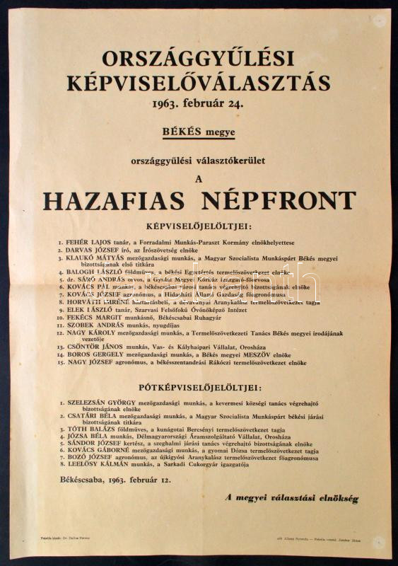 1963 Országgyűlés Képviselőválasztás plakátja, a Békés megye választók... https://www.darabanth.com/de/274-Fernauktion/274.0/Andere-Sammelgebiete/Drucksachen~28/1963-Orszaggyules-Kepviselovalasztas-plakatja-a-Bekes-megye-valasztokeruletben-indult-~II1396871