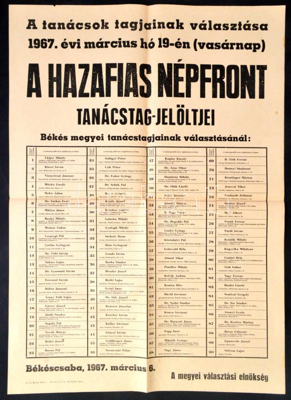 1967 Tanácsi választás plakátja, a békés megyei tanácsi pozíciókért in... https://www.darabanth.com/de/274-Fernauktion/274.0/Andere-Sammelgebiete/Drucksachen~28/1967-Tanacsi-valasztas-plakatja-a-bekes-megyei-tanacsi-poziciokert-indult-Hazafias-Nepfr~II1396920