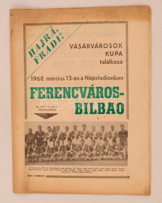 1968 Ferencváros-Bilbao focimeccsre kiadott műsorfüzet, jó állapotban,... https://www.darabanth.com/de/274-Fernauktion/274.0/Andere-Sammelgebiete/Drucksachen~28/1968-Ferencvaros-Bilbao-focimeccsre-kiadott-musorfuzet-jo-allapotban-16p~II1400559