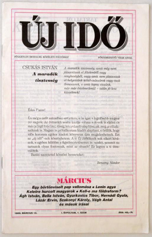 1989 Új Idő, független irodalmi, közéleti folyóirat. 1. évf. 1. szám https://www.darabanth.com/de/274-Fernauktion/274.0/Andere-Sammelgebiete/Drucksachen~28/1989-Uj-Ido-fuggetlen-irodalmi-kozeleti-folyoirat-1-evf-1-szam~II1398534