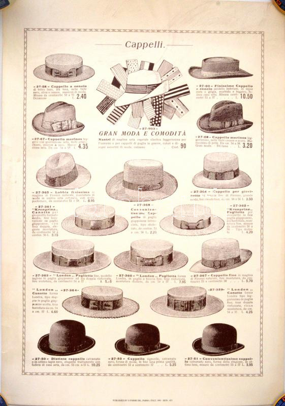 1995 Régi olasz kalapokat bemutató plakát reprint kiadása, 50x35 cm https://www.darabanth.com/de/274-Fernauktion/274.0/Andere-Sammelgebiete/Drucksachen~28/1995-Regi-olasz-kalapokat-bemutato-plakat-reprint-kiadasa-50x35-cm~II1400739