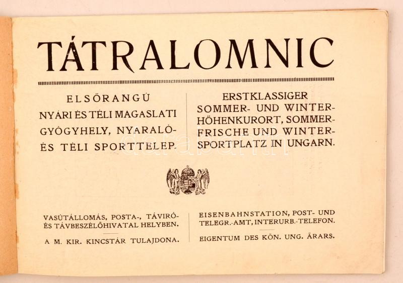 Tátralomnic Elsőrangú nyári és téli magaslati gyógyhely, nyaraló-, és téli sporttelep. Budapest, é.n., Turistaság és Alpinizmus kiadóvállalata. Kiadói papírborítója. Magyar, és német nyelven, fekete-fehér képekkel, és térképekkel illusztrálva. A borítója szakadt, sérült.
